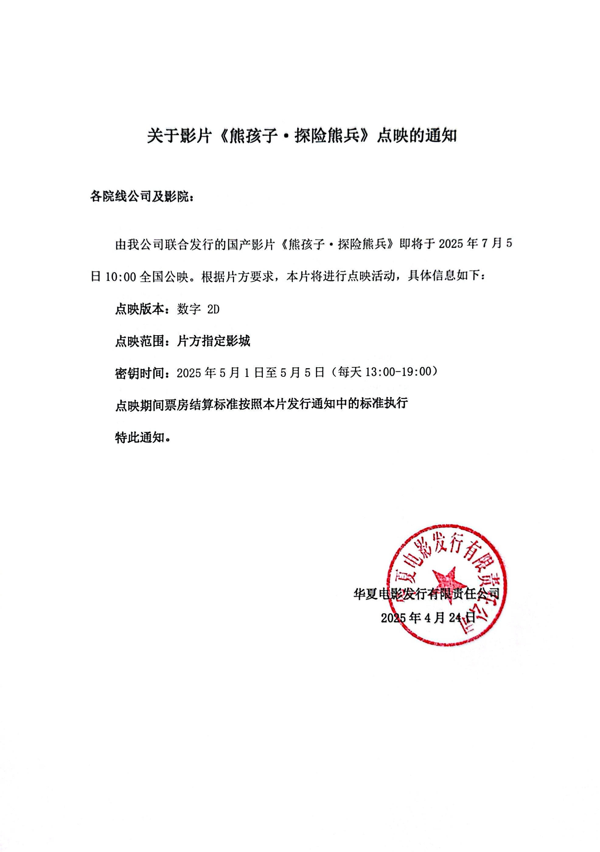 关于影片《熊孩子·探险熊兵》第一次密钥延期的通知
