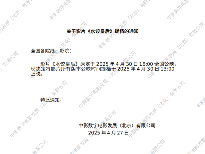 《水饺皇后》发行通知