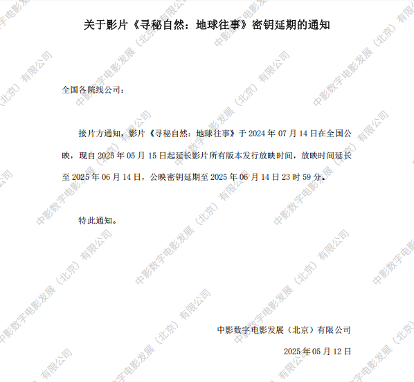 关于影片《寻秘自然:地球往事》15次密钥延期的通知