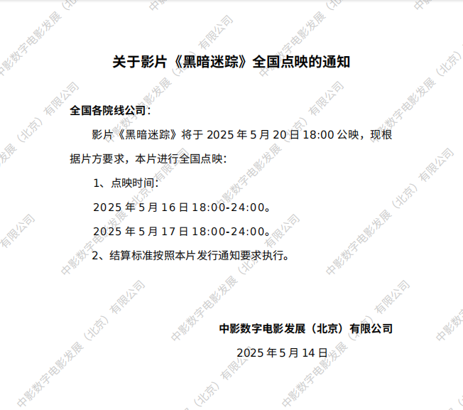 《黑暗迷踪》发行通知