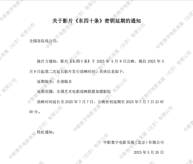 《东四十条》第四次密钥延期的通知