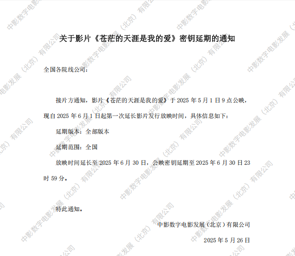 《苍茫的天涯是我的爱》发行通知