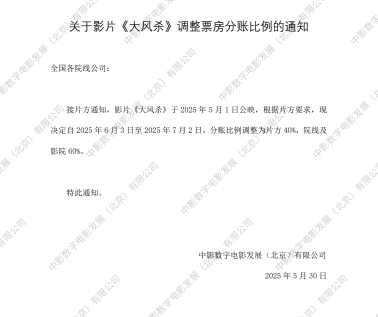 关于影片《大风杀》密钥延期及发行范围变更通知