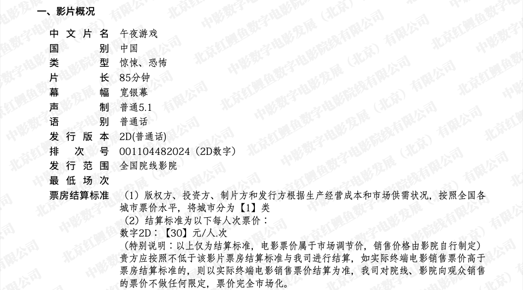 《午夜游戏》全国点映的通知