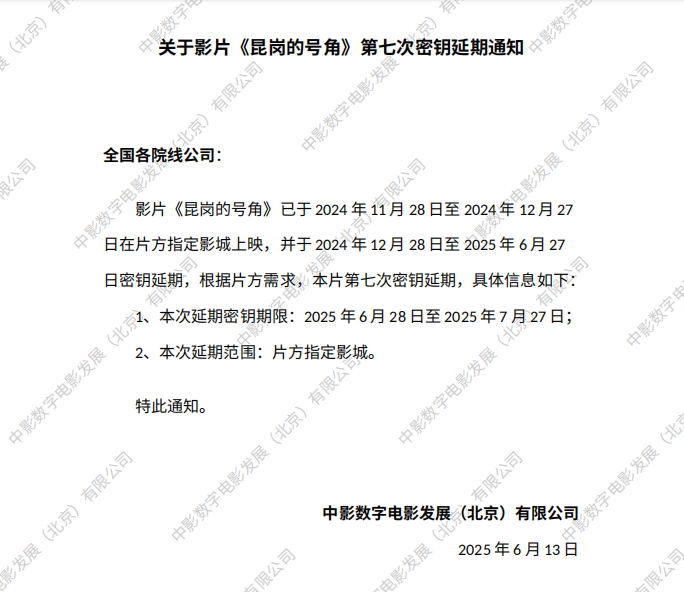 《昆岗的号角》第六次密钥延期的通知