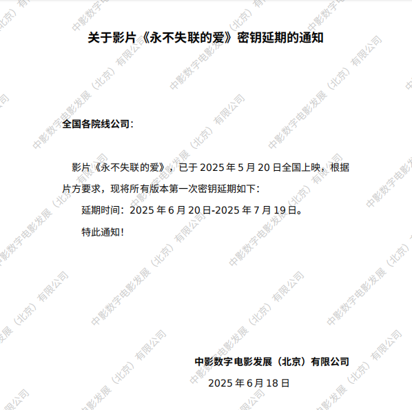 《永不失联的爱》第三次密钥延期的通知