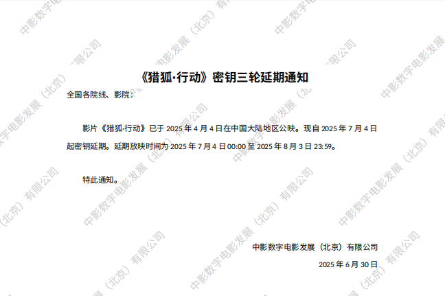 《猎狐·行动》密钥延期的通知