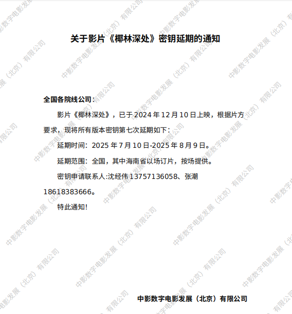 《椰林深处》第九次密钥延期的通知