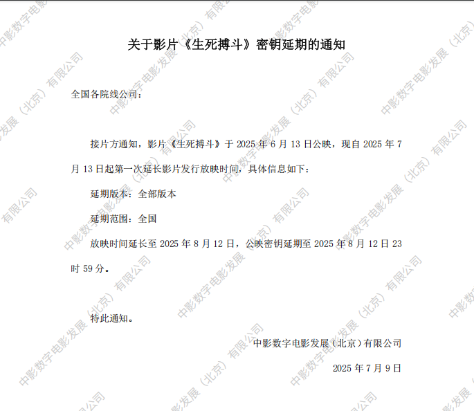 《生死搏斗》第二次密钥延期的通知
