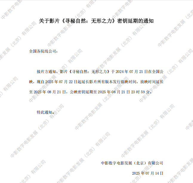 《寻秘自然:无形之力》调整票房结算标准的通知