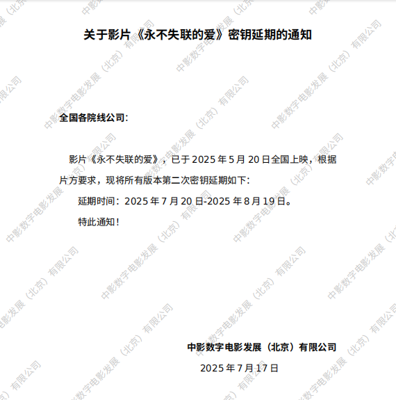 《永不失联的爱》第三次密钥延期的通知