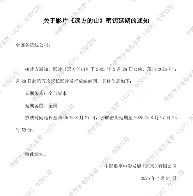 《远方的山》第二次密钥延期的通知