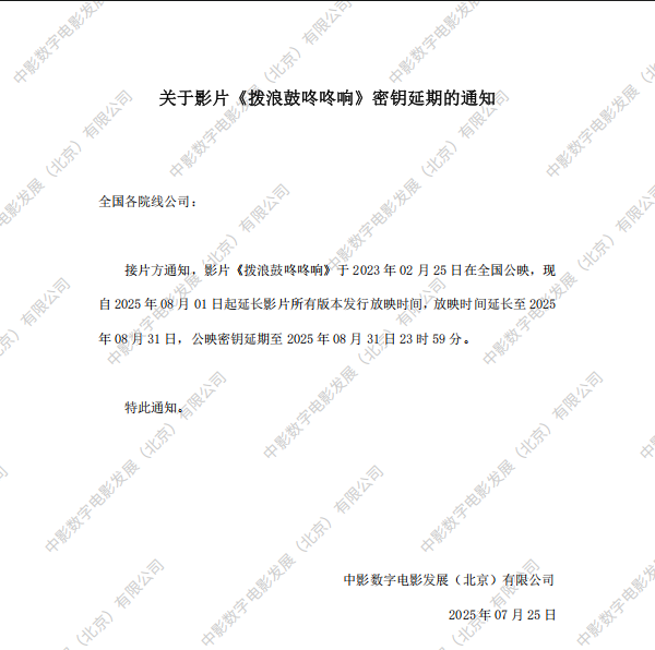 《拨浪鼓咚咚响》第三十一次密钥延期的通知