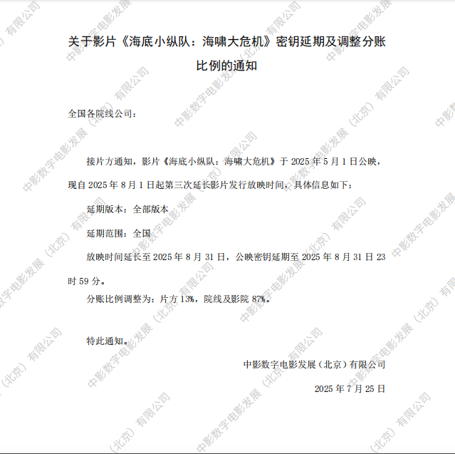 《海底小纵队:海啸大危机》调整分账比例的通知