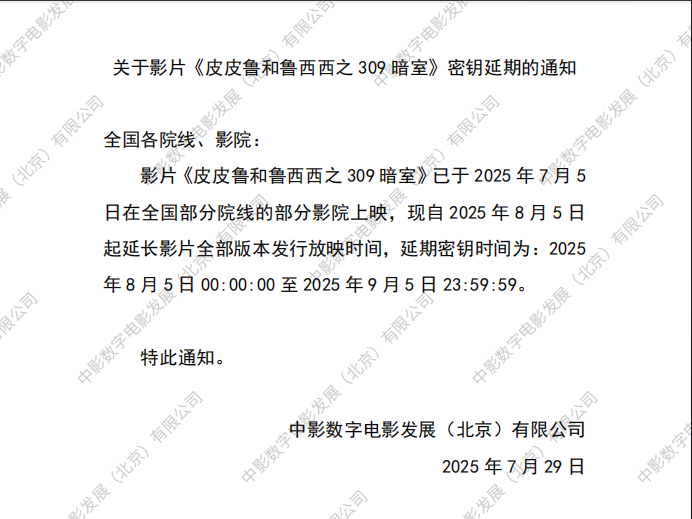 《皮皮鲁和鲁西西之309暗室》撤档的通知