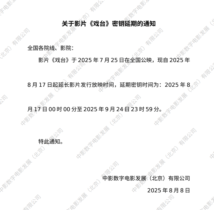 影片《戏台》变更点映信息通知