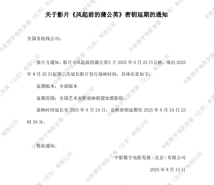 《风起前的蒲公英》密钥延期的通知