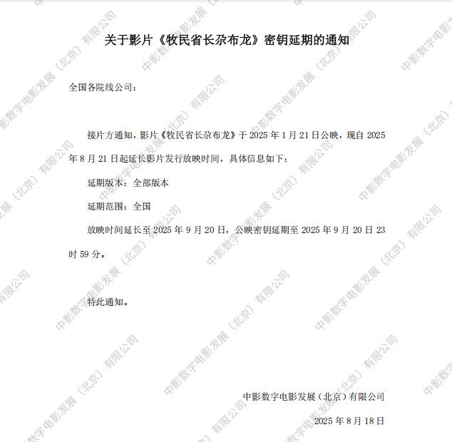 《牧民省长尕布龙》第十一次密钥延期的通知