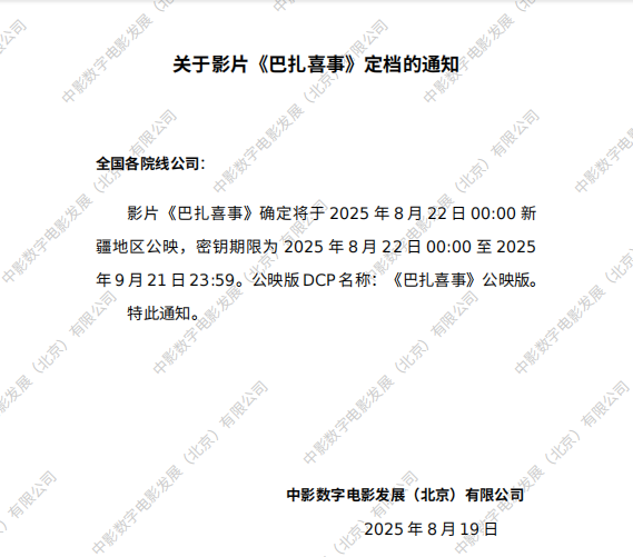 《巴扎喜事》发行通知