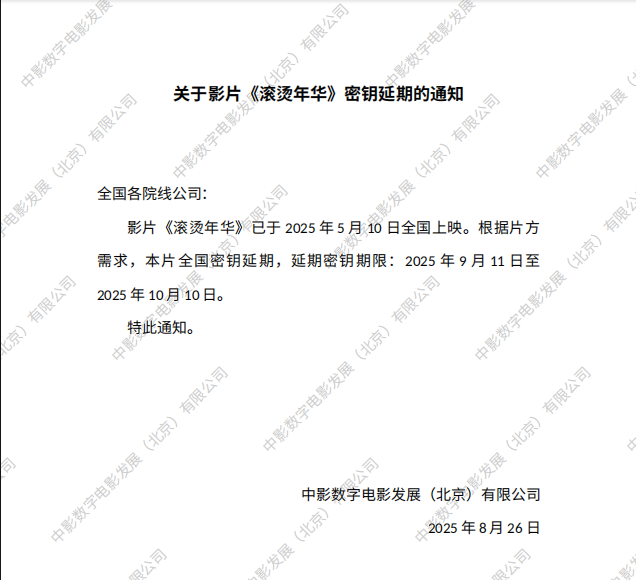 《滚烫年华》全国密钥延期的通知