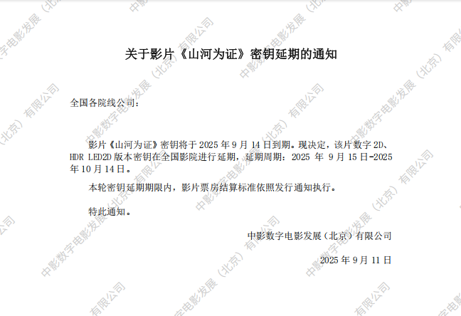 《山河为证》第二次密钥延期的通知