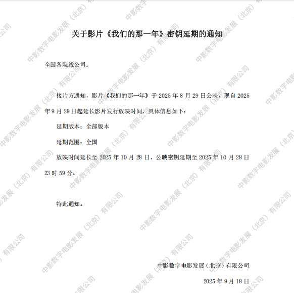 《我们的那一年》发行通知