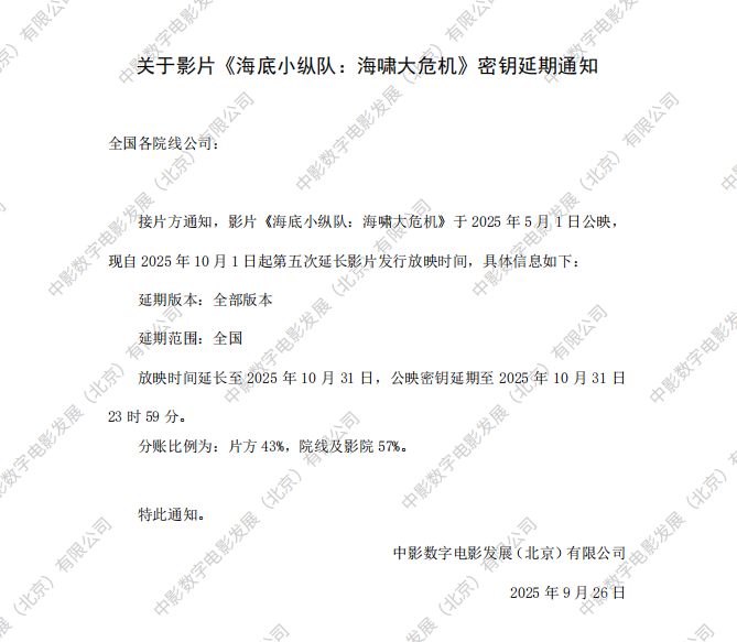 《海底小纵队:海啸大危机》密钥延期及调整分账比例的通知
