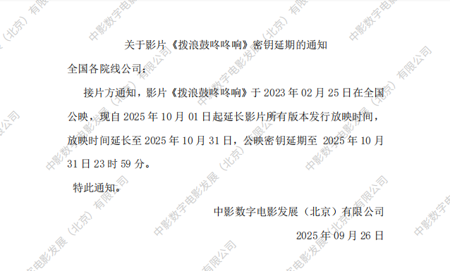 《拨浪鼓咚咚响》第三十二次密钥延期的通知