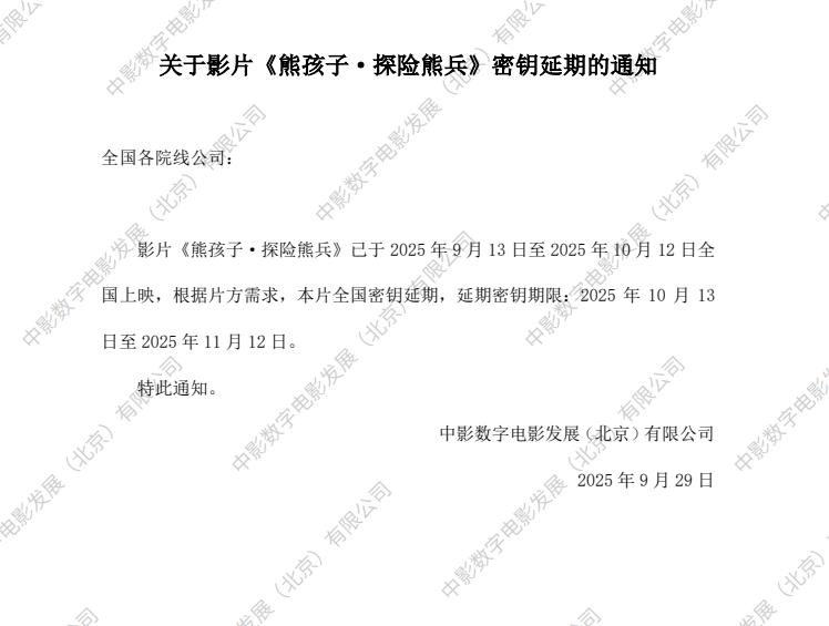 《熊孩子·探险熊兵》调整票房结算标准的通知