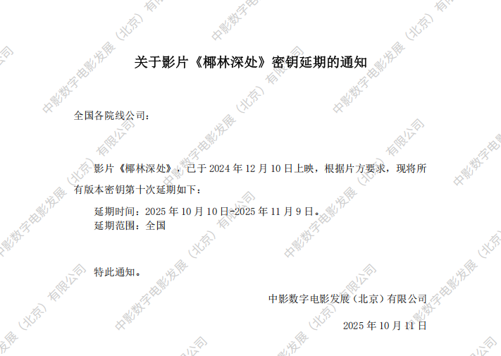 《椰林深处》第九次密钥延期的通知