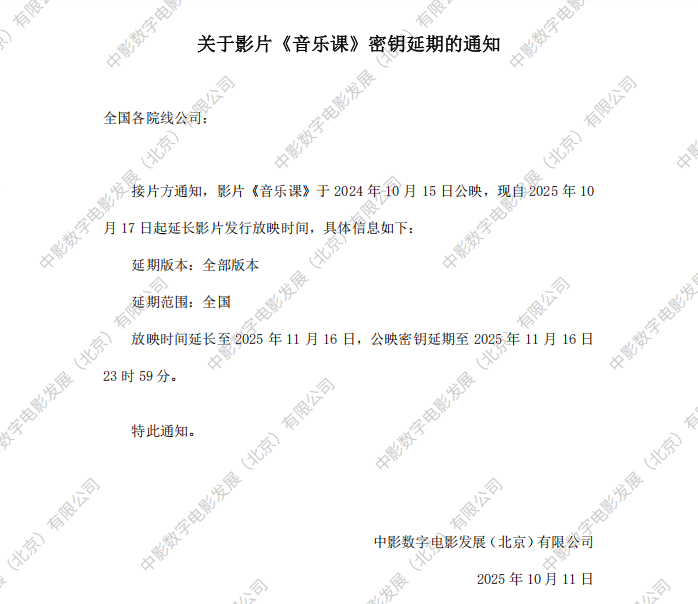 《音乐课》第九次密钥延期的通知