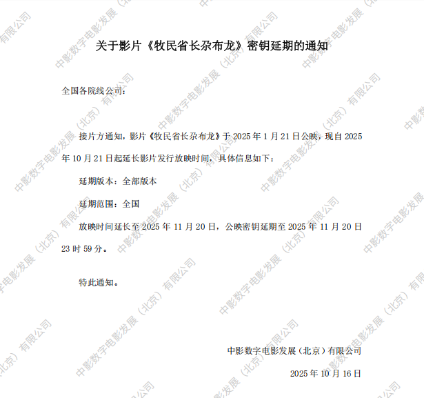 《牧民省长尕布龙》第十一次密钥延期的通知