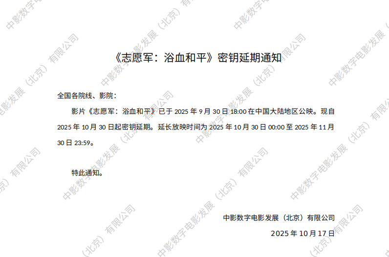 《志愿军:浴血和平》发行通知