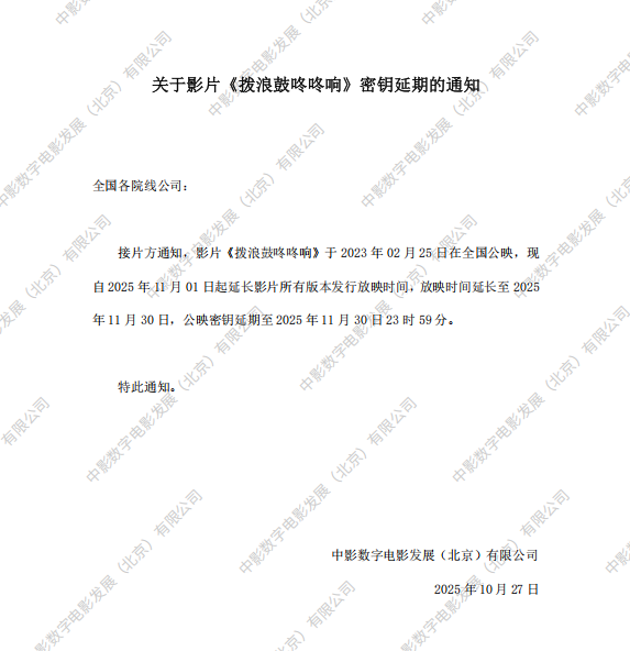 《拨浪鼓咚咚响》第三十一次密钥延期的通知