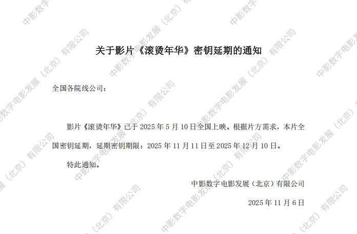 《滚烫年华》全国密钥延期的通知