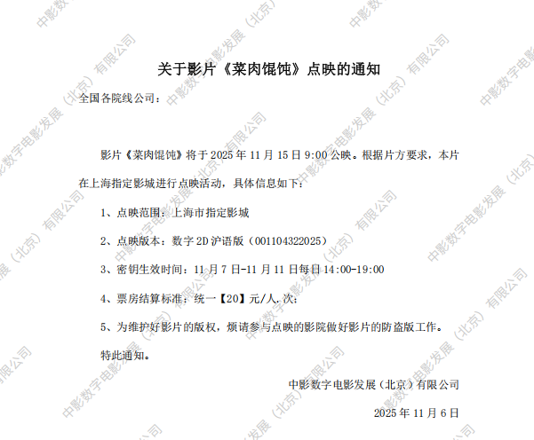 《菜肉馄饨》密钥延期及调整发行范围的通知