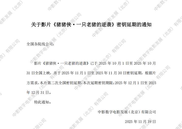 《猪猪侠·一只老猪的逆袭》密钥延期的通知