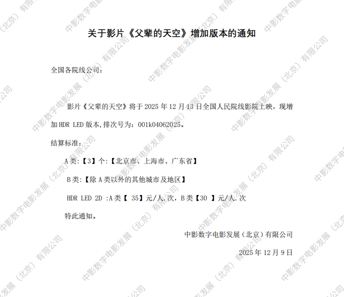 《父辈的天空》发行通知