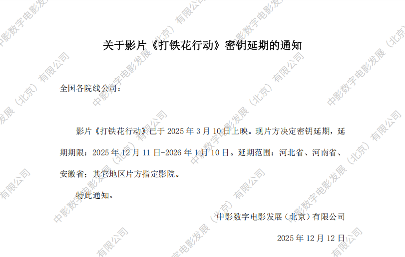 发行通知 » 《打铁花行动》第八次密钥延期的通知