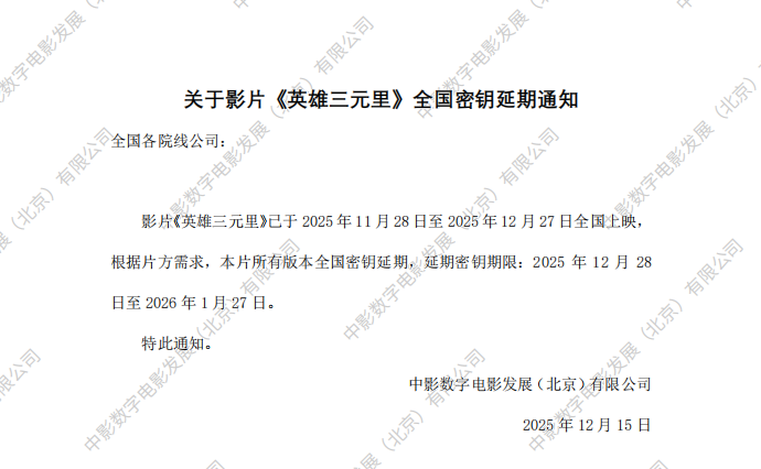 《英雄三元里》增加放映版本的通知