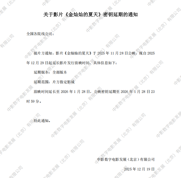 发行通知 » 《金灿灿的夏天》密钥延期的通知
