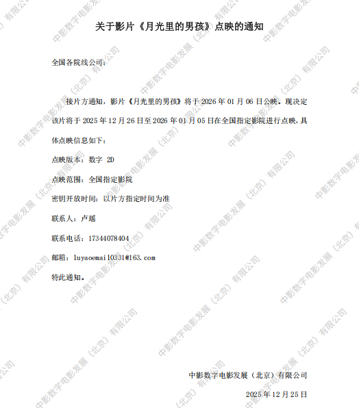 《月光里的男孩》发行通知