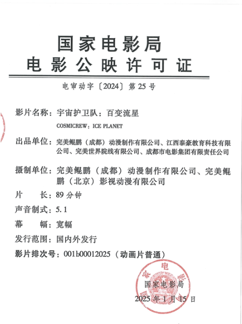 《宇宙护卫队:百变流星》密钥延期的通知