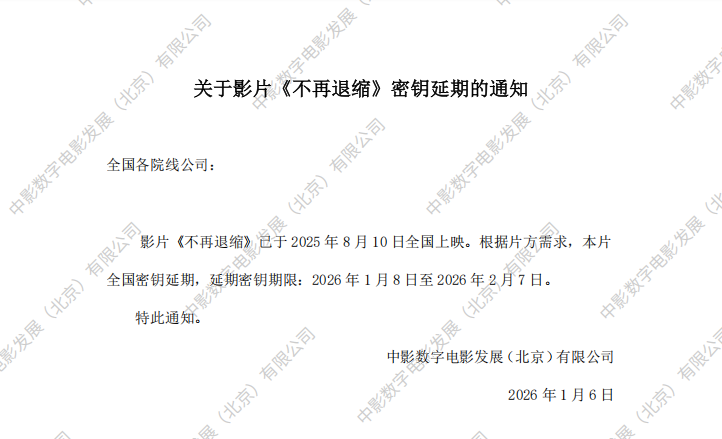 《不再退缩》密钥延期的通知