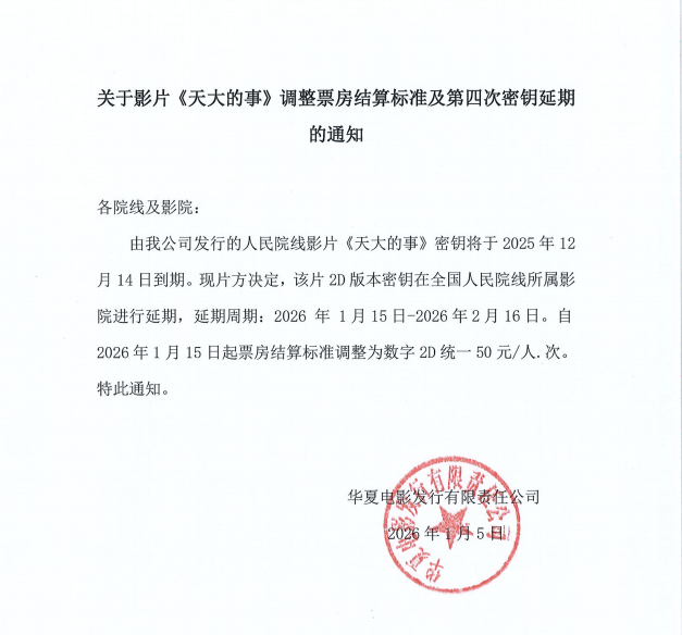 发行通知 » 《天大的事》调整票房结算标准及第四次密钥延期的通知