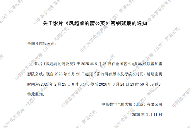 关于影片《风起前的蒲公英》第二次密钥延期的通知