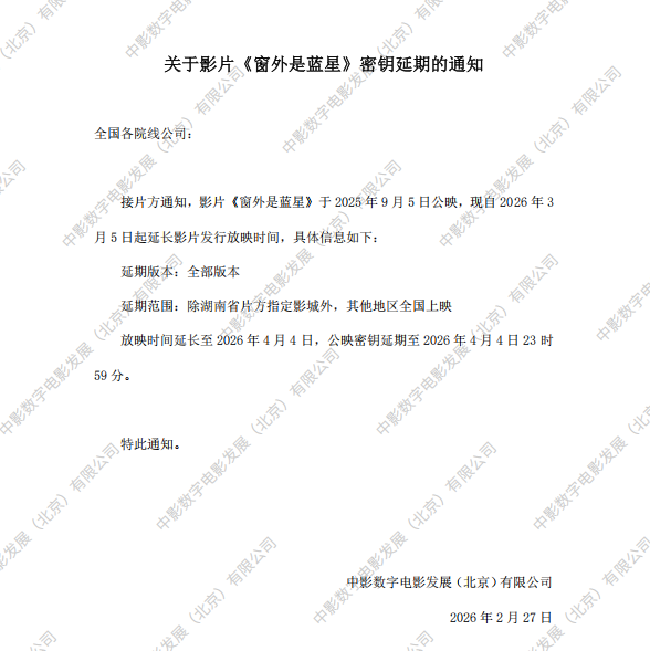 《窗外是蓝星》第二次密钥延期的通知