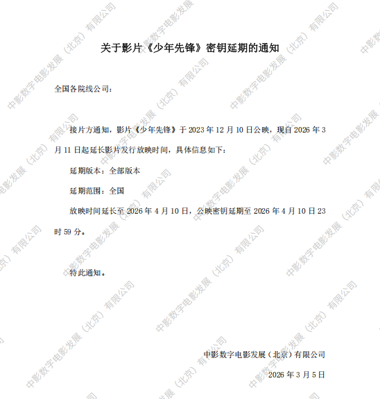 《少年先锋》第二十次密钥延期的通知