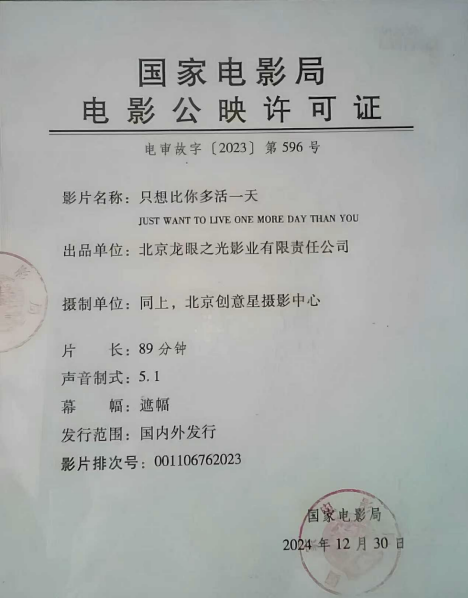外文片名:JUST WANT TO LIVE ONE MORE DAY THAN YOU