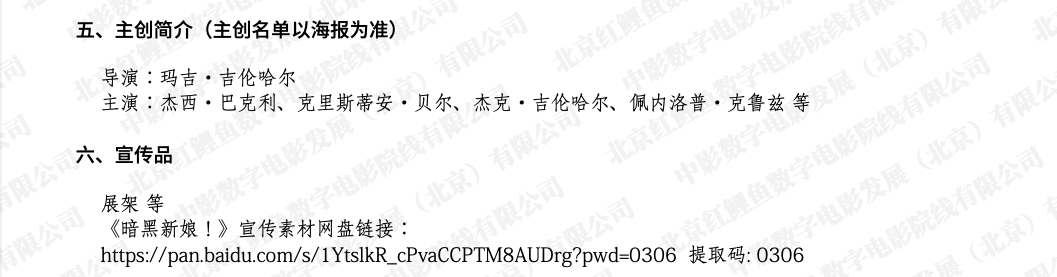 最新电影预告、网盘素材、发行通知